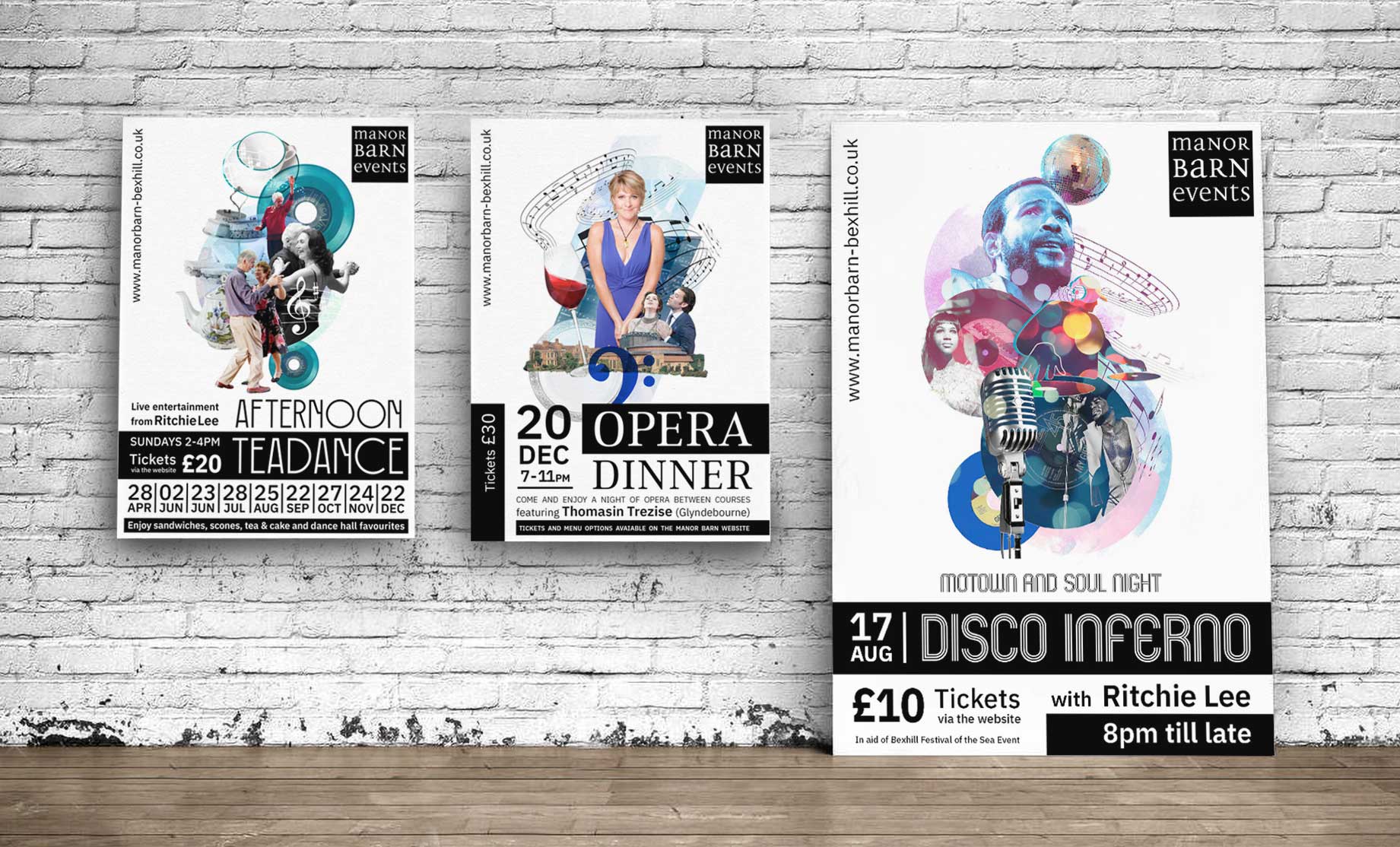 The Manor Barn is a hire and entertainment venue in East Sussex. Looking to expand their own events throughout 2019, they required posters and social media material for the different events. Rather than designing one off pieces of marketing, I suggested we develop a larger campaign that used a continuing style and theme to help boost brand recognition. The result was a long running series of promotional adverts that were delivered cross platform. Presented here a few of the event posters.