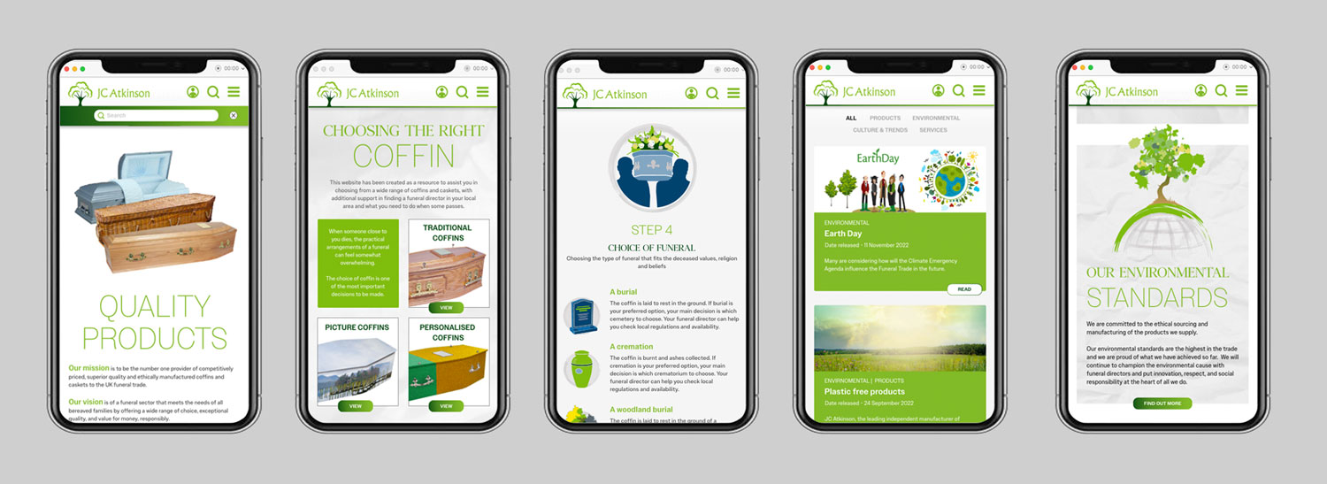 Each microsite is now structured so that Funeral Directors can quickly access and present product ranges directly to families via a tablet or laptop when assisting with funeral arrangements. Once logged in, Funeral Directors are also able to access J C Atkinson's product ordering portal. Those without customer access, as well as the general public, are provided with appropriate resources and ways in which to find (or become) partners.